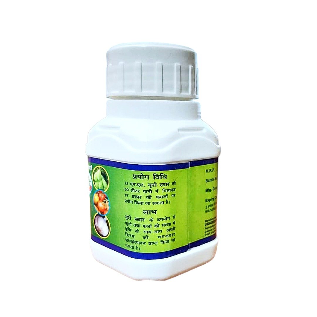 UROGREEN URO STAR is a high-quality liquid chemical fertilizer enriched with essential micronutrients like Zinc, Boron, Magnesium, and Iron. It boosts plant growth, improves flowering and fruiting, strengthens disease resistance, and enhances crop yield. Suitable for all crops and can be applied through foliar spray or drip irrigation.